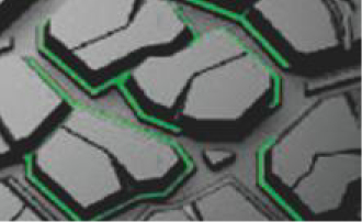 花紋塊底部邊緣增加花紋塊增強結(jié)構(gòu),增強了花紋塊的強度,提供更加有力的抓地性能。